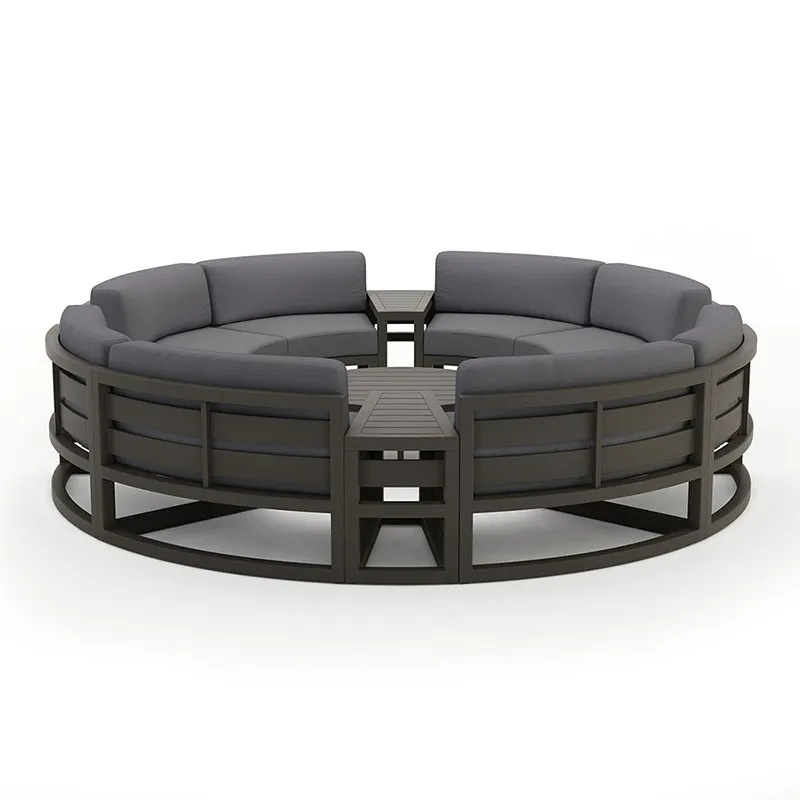 Die runde Outdoor-Couch ist nicht nur ein funktionales Möbelstück, sondern auch eine transformative Ergänzung für jeden Outdoor-Wohnbereich. Ihre einzigartige Form und der robuste Aluminiumrahmen machen sie zu einer hervorragenden Wahl für alle, die ihre Outdoor-Dekoration mit etwas aufwerten möchten, das modernen Stil mit außergewöhnlichem Komfort und Haltbarkeit verbindet.