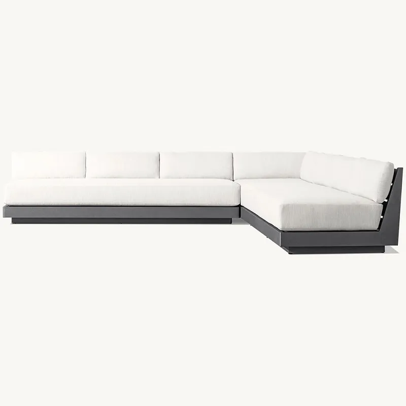 Unsere L-Couch-Terrassenmöbel sind mit einem robusten Aluminiumrahmen auf Langlebigkeit ausgelegt und halten so verschiedenen Wetterbedingungen stand, ohne zu rosten oder sich abzunutzen. Dank der leichten und dennoch robusten Beschaffenheit von Aluminium lässt sich diese L-förmige Couch leicht umstellen und eignet sich sowohl für saisonale als auch für ganzjährige Umgebungen. Mit einer glatten, wetterbeständigen Beschichtung versehen, bietet sie sowohl hervorragende Haltbarkeit als auch zeitlosen Stil.