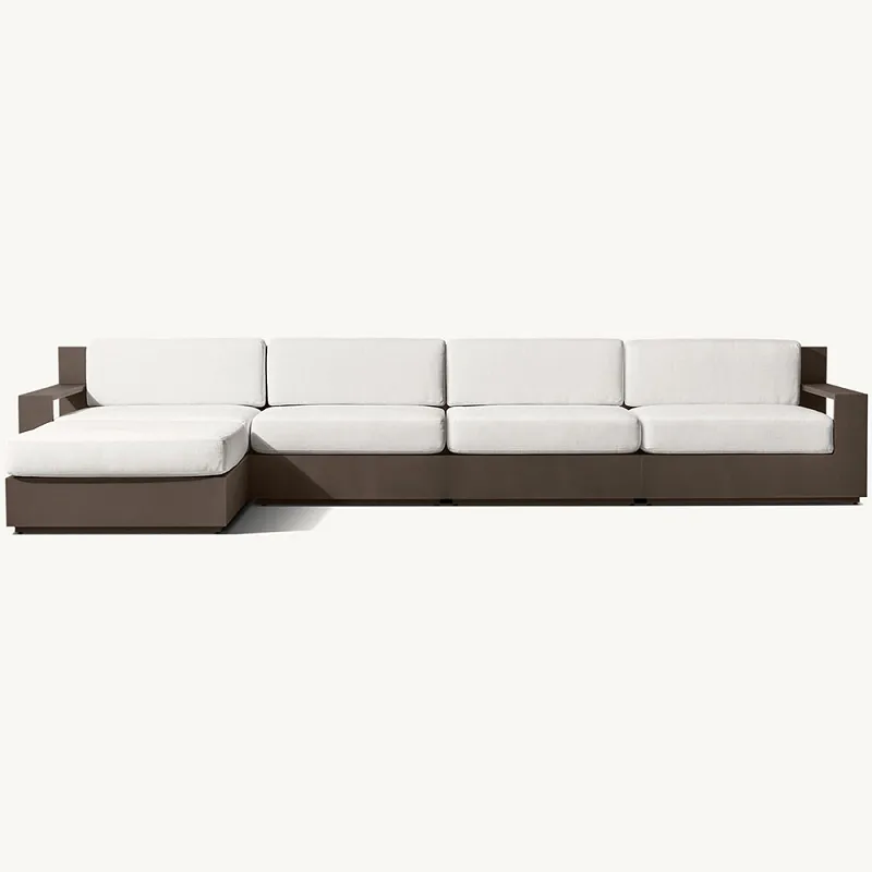 Unsere kleine Outdoor-Couch ist aus hochwertigem Aluminium gefertigt, wodurch sie leicht und dennoch robust genug ist, um den Elementen zu trotzen. Die rostbeständigen Eigenschaften von Aluminium machen es zu einer ausgezeichneten Wahl für Outdoor-Möbel und versprechen Langlebigkeit und einfache Wartung. Das schlanke Design des Aluminiumrahmens stützt die Struktur nicht nur robust, sondern verleiht Ihrer Außendekoration auch eine moderne Note.