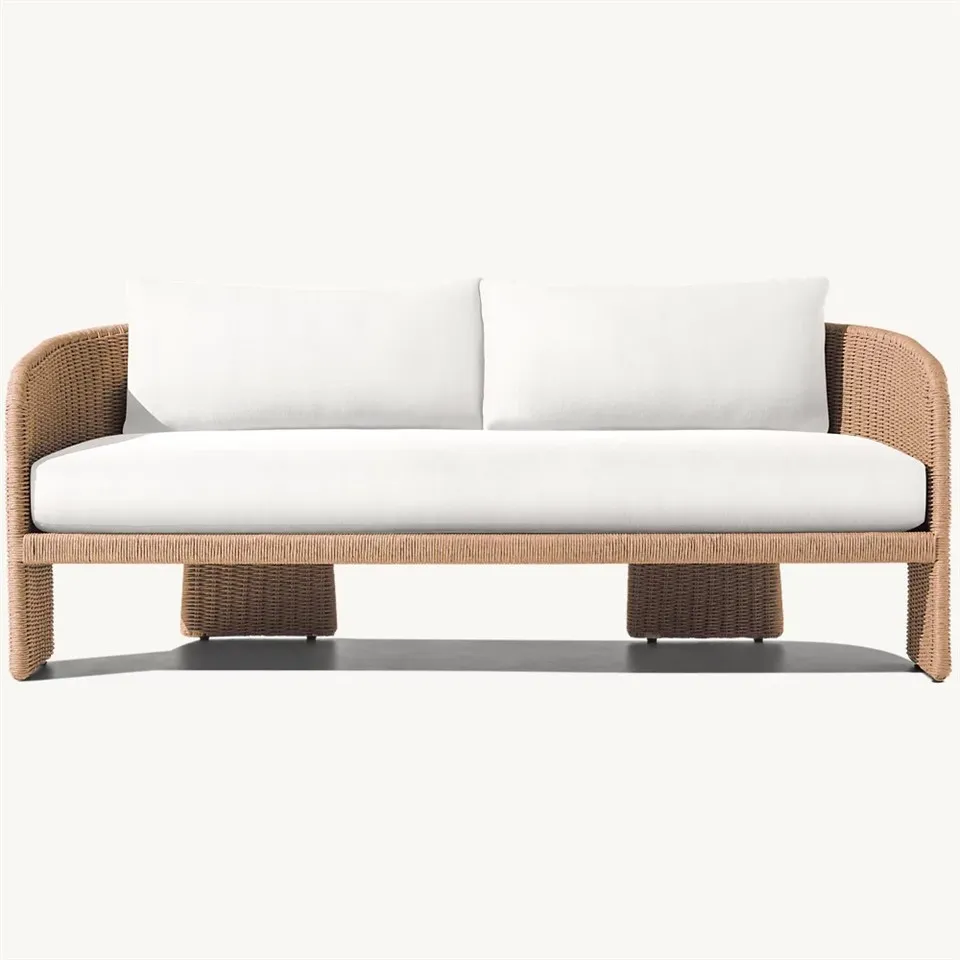 Die kompakten Abmessungen und klaren, fließenden Linien unserer Sofas fügen sich problemlos in jeden Einrichtungsstil ein. Egal, ob modern und schlicht oder klassisch und traditionell, dieses Sofa kann es perfekt ergänzen und dem Raum den letzten Schliff verleihen. Natürliches Rattan hat eine ausgezeichnete Robustheit, wird nicht leicht beschädigt und ist verschleißfest und kratzfest, was bedeutet, dass das Sofa über einen langen Nutzungszeitraum in gutem Zustand bleiben und Sie begleiten kann, um einen gemütlichen Moment nach dem anderen zu verbringen.