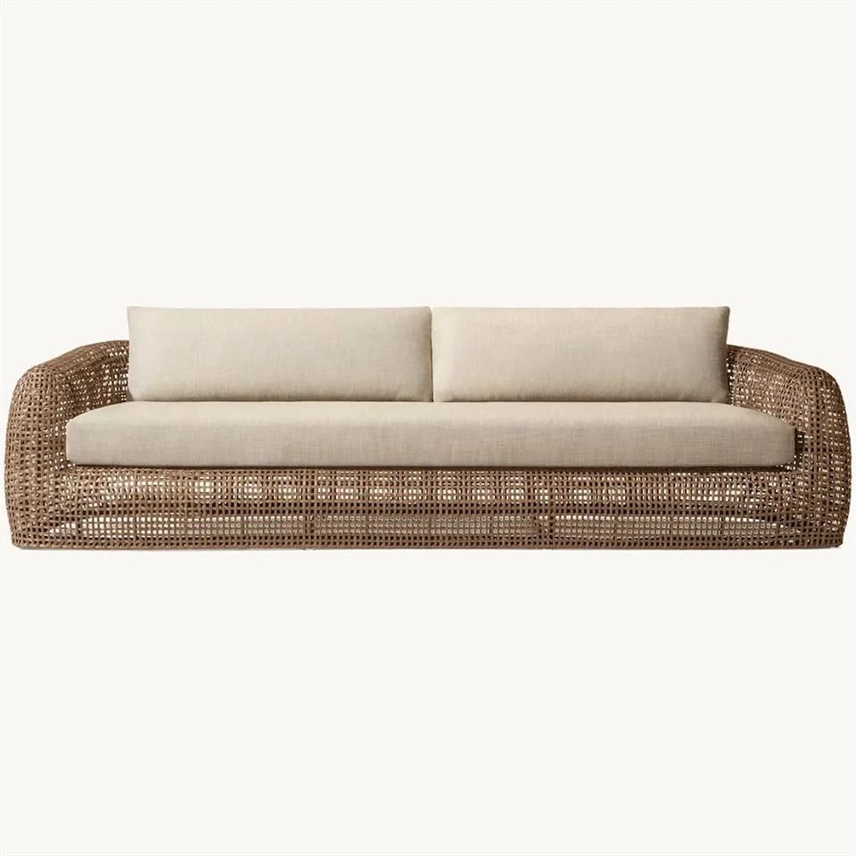 Das Rattan-Sofa L hat eine ausgezeichnete Wärmeleitfähigkeit, sodass Sie sich im Winter warm und im Sommer kühl fühlen und das ganze Jahr über ein angenehmes Erlebnis haben. Darüber hinaus machen ihre natürlichen Eigenschaften die Oberfläche des Sofas glatt und zart, angenehm anzufassen, sodass Ihr Körper vollkommen entspannen kann. Ob auf der Außenterrasse oder drinnen in Ihrem Wohnzimmer, Sie können den Komfort eines Rattan-Sofas genießen. Rattan-Sofas aus natürlichen Materialien sind umweltfreundlich, unbedenklich und entsprechen dem Konzept der nachhaltigen Entwicklung. Darüber hinaus bieten wir eine Vielzahl von Stilen und Designs an, die zu unterschiedlichen Dekorationsstilen und -bedürfnissen passen. Sie können den am besten geeigneten Stil entsprechend Ihren Vorlieben und Platzanforderungen auswählen und Ihrem Zuhause einen einzigartigen Charme verleihen.